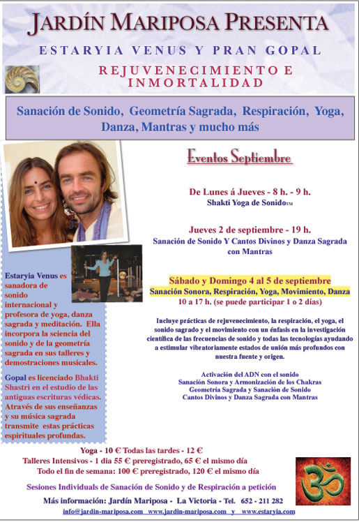 Este retiro incluye prácticas de rejuvenecimiento, la respiración, el yoga, el sonido sagrado y el movimiento con un énfasis en la investigación científica de las frecuencias de sonido y todas las tecnologías ayudando a estimular vibratoriamente estados de unión más profundos con nuestra fuente y origen.